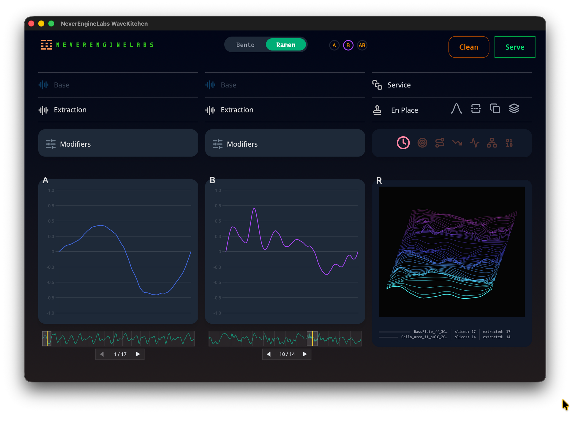 Whether you are designing, experimenting, or searching for fresh sounds, WaveKitchen keeps your work organized. You can even modify single strands of "Ramen" using precise cuts. The world is your oyster.